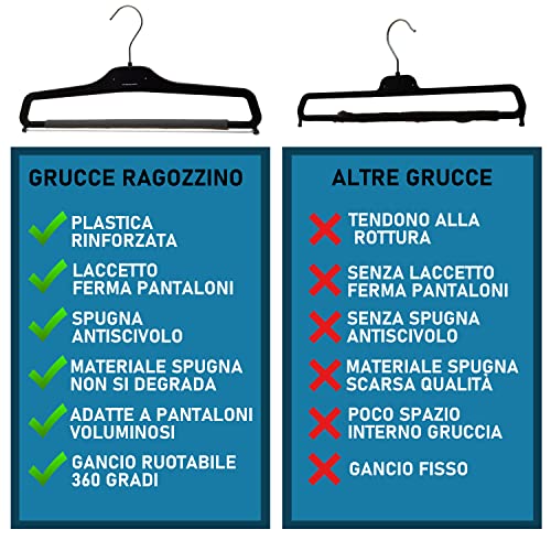 Ragozzino Grucce Pantaloni Salvaspazio per Armadio 20 Pezzi - Appendini in Plastica Riciclata con Spugna Antiscivolo - Stampelle Armadio Appendi Pantaloni Made in Italy - Porta Pantalone Guardaroba