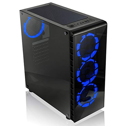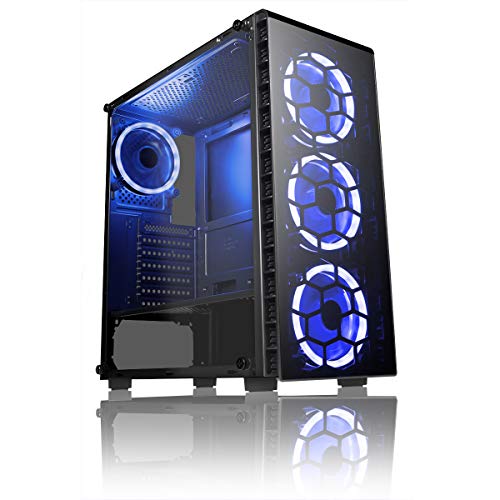 CiT Raider Caso di Gioco Con 4 x Halo Anello Blu Fans Pannello Anteriore In Vetro Temperato