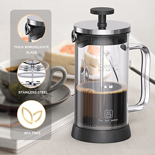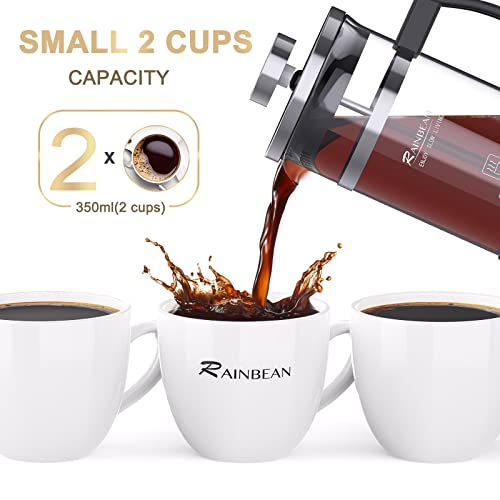 RAINBEAN Caffettiera Francese French Press 350 ml / 3 tazze, Filtro in Acciaio Inossidabile Pressa Francese in Vetro Borosilicato Resistente al calore (350 ml, Vetro)