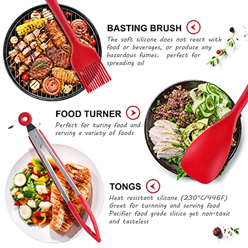 Rainberg - Set di utensili da cucina in silicone, 12 pezzi, set di utensili da cucina antiaderenti, set di utensili da cucina, set di spatole, frusta, set di utensili da cucina (rosso)