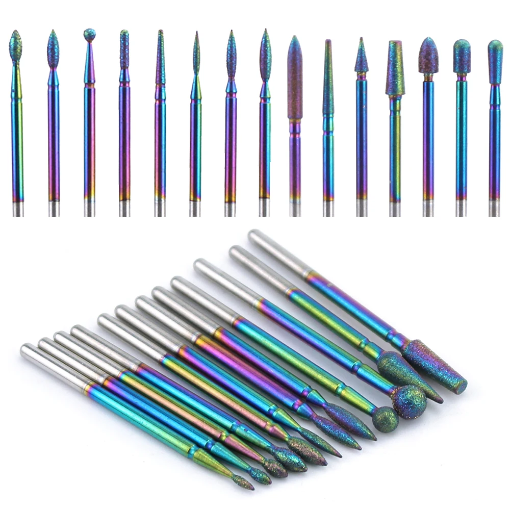 Rainbow Diamond Burr Milling Cutter Nail Art Drill Bits Coating Carbide Cuticle Clean for Manicure Electric Manicure Pedicure