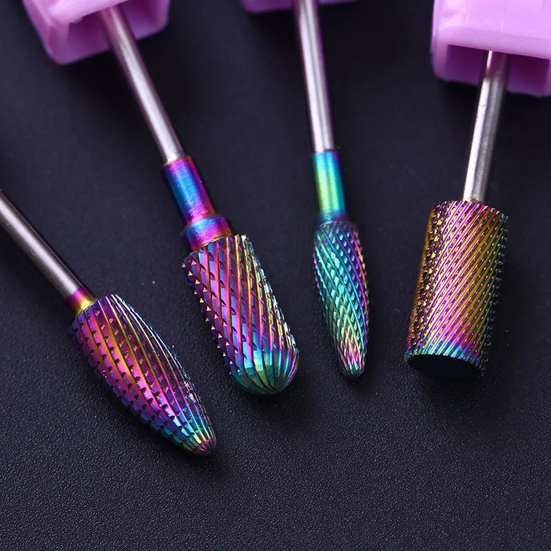 Rainbow Nail Drill Bit Tungsten Steel Mill Machine Set Cutter For Pedicure Electric Nail Files Milling Cutter For