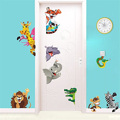 Rainbow Fox Elefante scimmia decalcomanie della parete Animale zoo adesivi da muro per bambini camera asilo nido decorazione