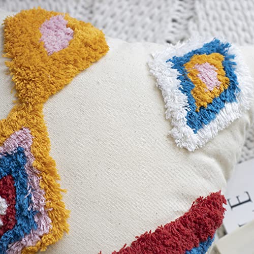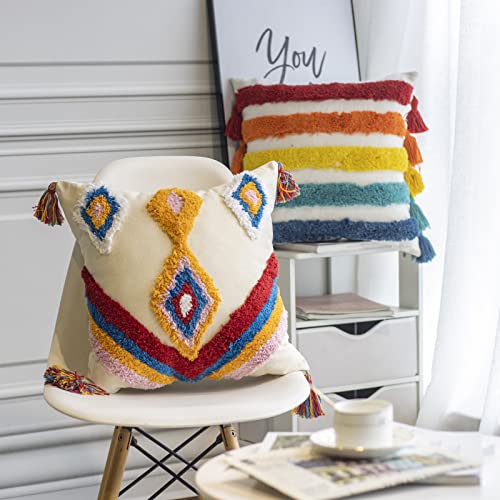 Easy Joy Rainbow Fodere per Cuscino 45x45cm Set di 2, Fodera Cuscini Quadrata Trapuntata a Righe Geometriche Colorate con Decorazioni di Nappe per Divano Camera da Letto Soggiorno Ufficio