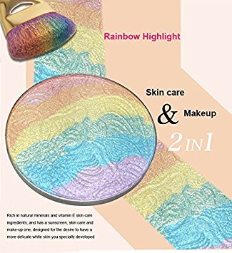 Rainbow Highlighter Blusher Eyeshadow Shimmer Powder Palette 3 In 1 Makeup Bronzer Contour Cosmetics by TANALI
