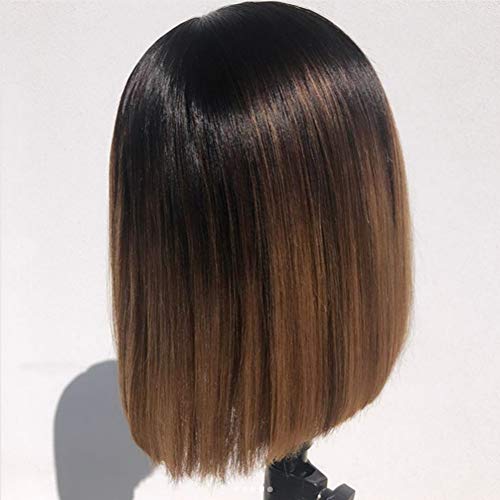 Rainbow Snow 1B - Parrucca di capelli umani biondi con pizzo frontale, 13 x 6 cm, taglio a caschetto medio, capelli umani corti, per donne di colore, 2 tonalità