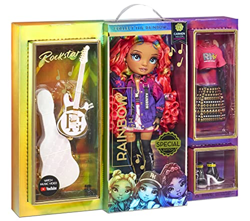 Rainbow High Rockstar Carmen Major Moda Set da Gioco con 2 Abiti Mix&Match, Strumenti Musicali e Accessori per Bambole. età: dai 6 ai 12 Anni, Colore, 423331-INT
