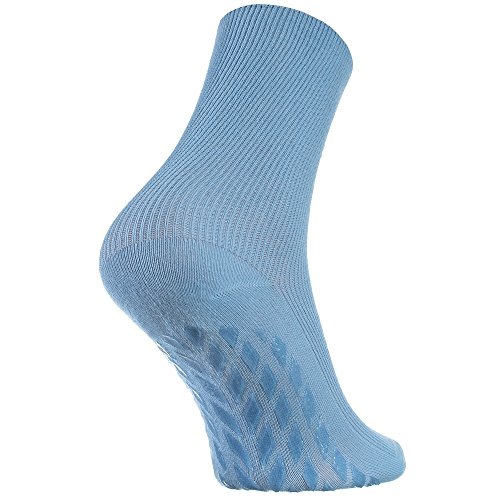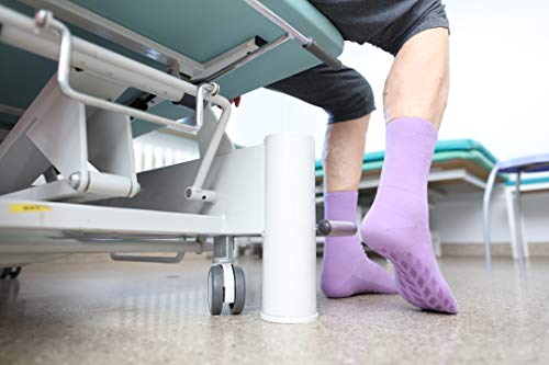 Calzini in ABS senza elastico per donne e uomini: calzini in cotone extra progettati senza tipici polsini a maglia assicurano il massimo comfort e un flusso sanguigno libero, senza alcuna pressione sul piede, anche se le calze aderiscono perfettamente al piede. Il sistema antiscivolo ABS assicura al piede una posizione stabile, anche su superfici lisce. Consigliamo queste calze soprattutto per gli anziani con gonfiore e disturbi circolari, che vogliono sentirsi comodi anche senza scarpe.