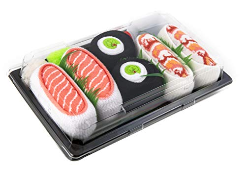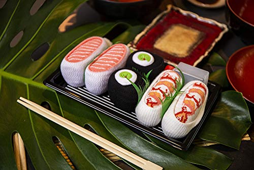 CALZINI UNICI E STRAORDINARI -- I sushi socks sono gli unici in tutto il mondo. L'idea per i calzini che sembrano e che sono pacchieggiati come i sushi veri è stata nata parecchi anni fa nei testi dei giovani creativi che amano i sushi. Ogni calzino viene deposito in modo appropriato cosi come sembra questa delicatezza giapponesa. Se cerchi degli unici calzini, questi per te. I fan di sushi di calzini comici uniamoci!