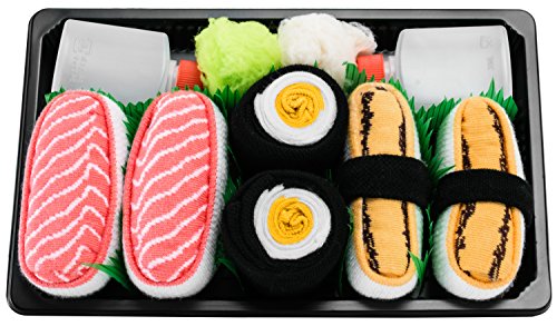 CALZINI UNICI E STRAORDINARI -- I sushi socks sono gli unici in tutto il mondo. L'idea per i calzini che sembrano e che sono pacchieggiati come i sushi veri è stata nata parecchi anni fa nei testi dei giovani creativi che amano i sushi. Ogni calzino viene deposito in modo appropriato cosi come sembra questa delicatezza giapponesa. Se cerchi degli unici calzini, questi per te. I fan di sushi di calzini comici uniamoci!