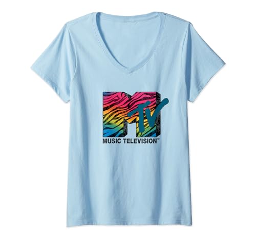 MTV Rainbow Zebra Stripe Logo Maglietta con Collo a V