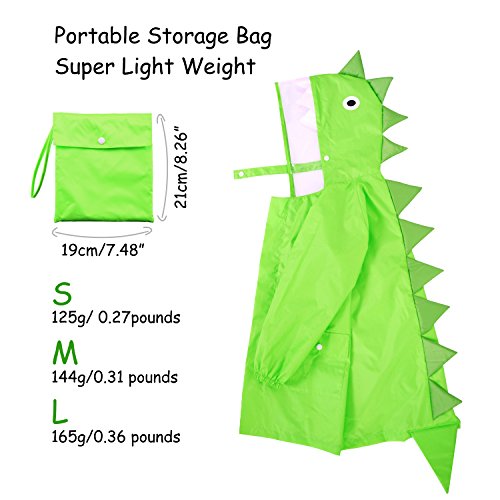 Rainbrace Impermeabile per Bambini, 2-10 Anni, Dinosauro Impermeabile Divertente Leggero da Esterno, Cartoni Animati, per Bambino o Bambina, Abbigliamento per Bambini, L