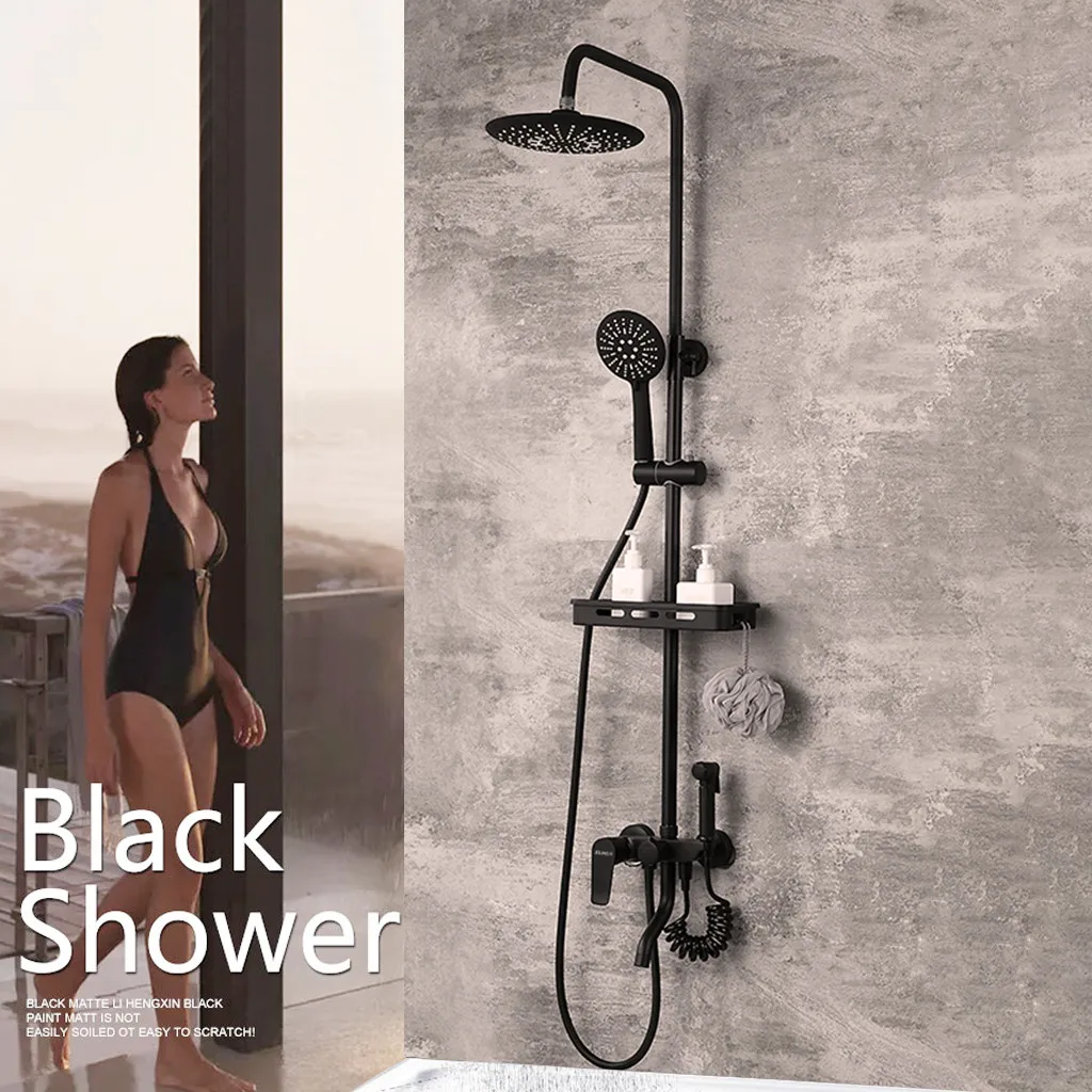 Rainfall Shower Head Set Stainless Steel Bathroom Shower Set 9'' Wall Mounted Shower Head System Bath Faucet Shower Set [US]