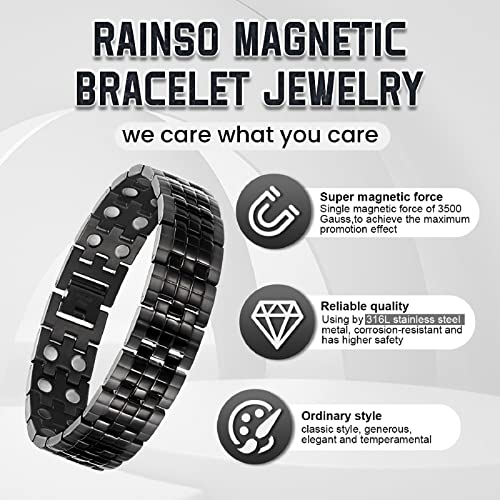 Rainso Braccialetto magnetico per terapia magnetica ultra resistente, per sollievo dal dolore e tunnel carpale da uomo, Include strumento di smontaggio(nero)