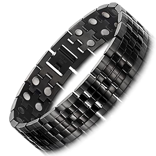 Materiali Di Alta Qualità: Acciaio al titanio ecologico bracciali, Nero alla moda. Materiale superiore in acciaio al titanio, lucidatura delicata, finitura a specchio e lunga durata del colore.È molto adatto per l'uso quotidiano.Braccialetto magnetico con potenti magneti ad alta potenza (3500 gauss), non solo ha un design elegante, ma ha anche effetti sulla salute, permettendoti di indossarlo con alla moda e migliorare la tua salute.