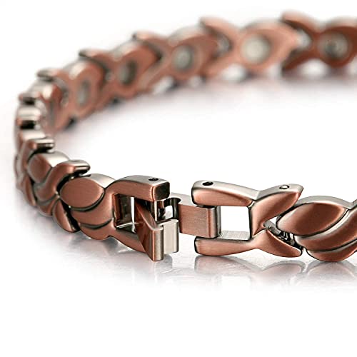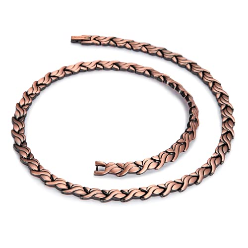 Rame Puro 99,9%: Materiale di rame puro superiore, lucidatura delicata, levigatura manuale, finitura a specchio e lunga durata del colore. È molto adatto per l'uso quotidiano. Senza piombo e nichel. Collana magnetico con potenti magneti ad alta potenza (3500 gauss), non solo ha un design elegante, ma ha anche effetti sulla salute, permettendoti di indossarlo con eleganza e migliorare la tua salute.