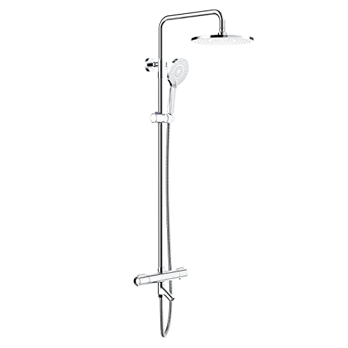 Rainsworth Colonna doccia con termostatico vasca, soffione 30cm, doccetta a 5 getti, set doccia regolabile in altezza con termostato, cromo