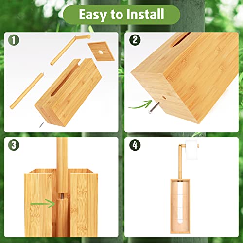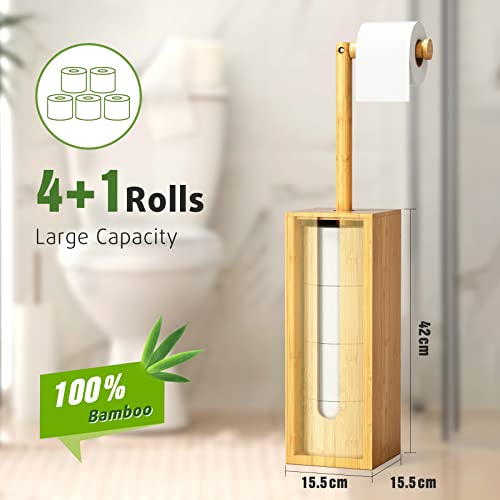 Rainsworth Porta carta igienica da terra con contenitore per 4 rotoli, Portarotolo carta igienica in legno 2 in 1 in piedi con coperchio e vassoio, porta carta igienica in bambù ecologico