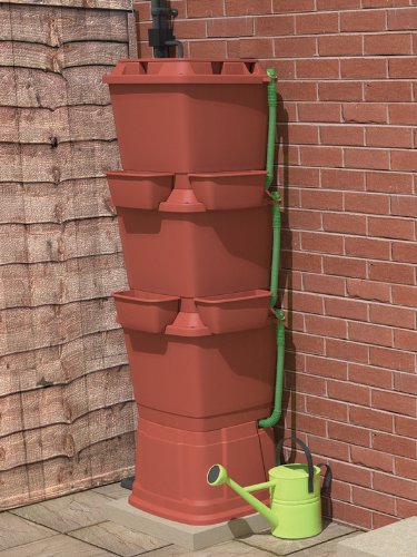 Rainwater Terrace Cisterna d'Acqua 200 Litri a 3 Livelli, con 1 Vaso per Piante Superiore, 4 vasi di Piante Laterali - Terracotta