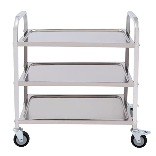 RainWeel Carrello da portata in acciaio inox con 3 ripiani, carrello multiuso in acciaio inox (grande: 85 x 45 x 90 cm)