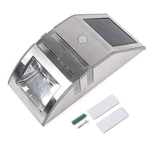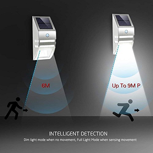 Rainyblue - Luci solari da parete esterne, LED wireless a luce solare, sensore di movimento di sicurezza, luci da parete per casa, patio, terrazza, cortile, vialetto d'accesso, garage, scale e muro esterno