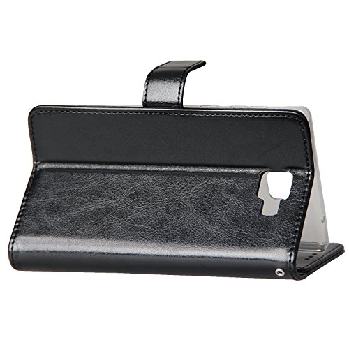 Raiphy Custodia in pelle Per Elephone S8, Custodia in pelle Protettiva con Slot per Scheda e Funzione di Supporto (Nero)