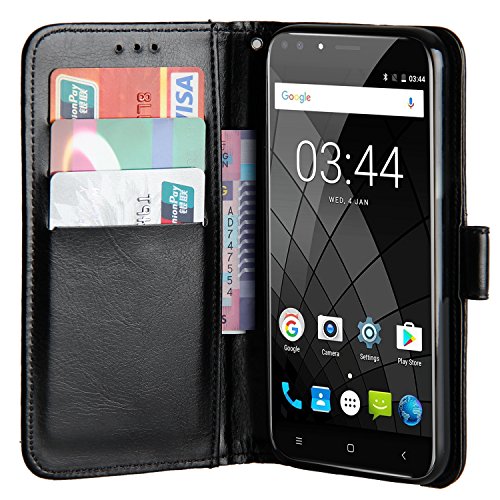 Raiphy Custodia in pelle Per Oukitel U22, Custodia in pelle Protettiva con Slot per Scheda e Funzione di Supporto (Nero)