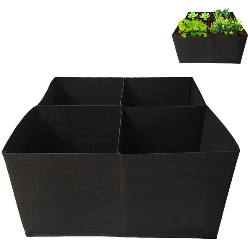 Bullet Points:1、High Quality: The garden grow bag features non-woven fabric material to allow drainage and breathe, and it is friendly to environment to producing superior plants, and this growing bag can make a great environment for your plants.2、Perfect in Use: The fabric raised garden beds are easy to place where you need it and fill with fresh soil. With the bag, you can plant your veggies, salad leaves or flowers whatever you like. And the bag is the perfect solution for rocks, poor soil and paved yard issues.3、4 Compartments: The square planting bag has 4 compartments, and the 4 grid design can satisfy your choice of planting different plants. The size and depth are large. And the planting bag is easy to separate different types of plants or crops grown in different periods.4、Reusable Bag: We recommend to use a mix of garden soil, not potting soil and fill the bed fully so that the sides don't cave in. When the season is over, the bed can be emptied, stored and reused.5、Small