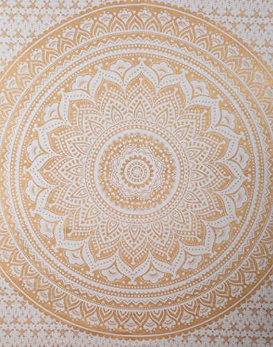 RAJRANG BRINGING RAJASTHAN TO YOU Arazzo Mandala Grande Bianco e Oro 228x274 Cm Arazzi in puro cotone per la decorazione della parete Arazzo decorativo Boho dorato Hippie