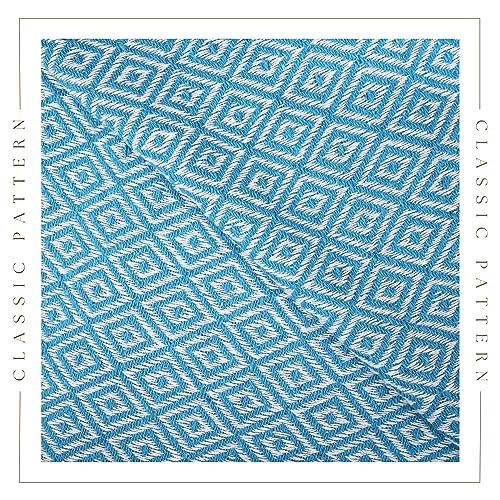 RAJRANG BRINGING RAJASTHAN TO YOU Coperta di Lancio Blu Aqua con Nappe Boho - Lancio da Fattoria Decorativo Decorativo da 50x60 Pollici Super Morbido per divani, sedie e Divano
