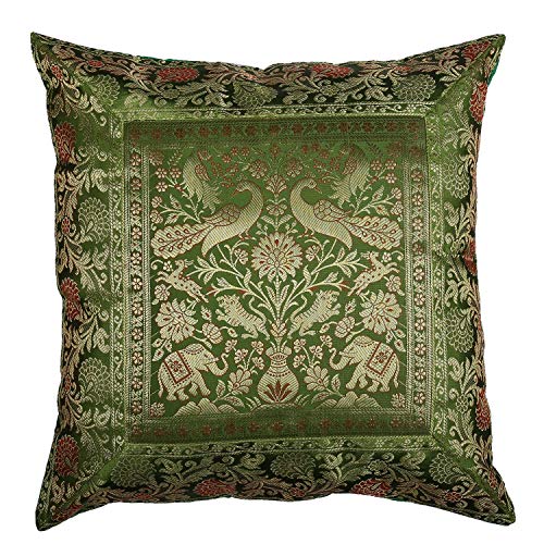 RAJRANG BRINGING RAJASTHAN TO YOU Copertine di cuscini etnici set di 10 cuscini di divano di pavone accento di seta boemia Kantha decorazione per la casa 16x16 pollici
