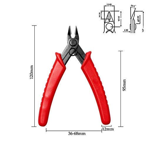 Raking DIY tagliafili mini elettronica filo lato cavo cutter in acciaio al cromo-vanadio antiscivolo in plastica diagonale pinza spelafili, 120 * 12 mm (Red)