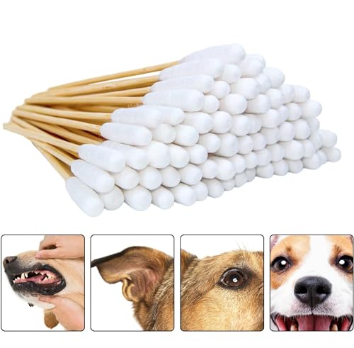 Materiale di Alta Qualità: I bastoncini di cotone per cani sono realizzati in legno di bambù naturale e robusto e morbido cotone selezionato. Morbido, delicato, non tossico e non irritante, pregevole fattura, consistenza eccellente, non facile da rompere, morbido e confortevole al tatto, cotone fioc può essere utilizzato ripetutamente sulla pelle.