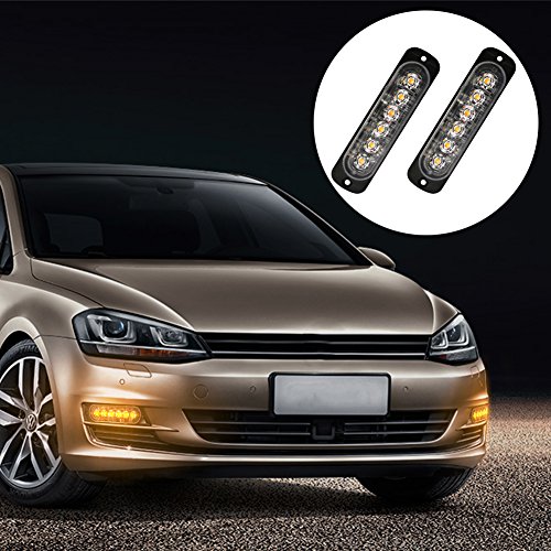 Ralbay 2pcs 12~24V 6LED Lampeggiante Emergenza Avvertimento Luci Ambra Anteriore Strobo Lampeggiante Recupero Ripartizione Beacon Light Bar Adatto a Auto Camion Rimorchio Trattore