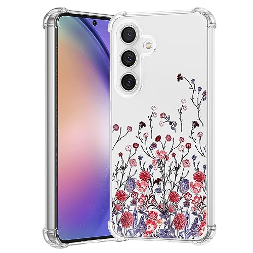 RALEAVO Custodia floreale per Samsung Galaxy A54 5G, custodia trasparente a forma di fiore sottile per ragazze donne, custodia protettiva in morbido TPU trasparente con angoli rinforzati, fiore rosso