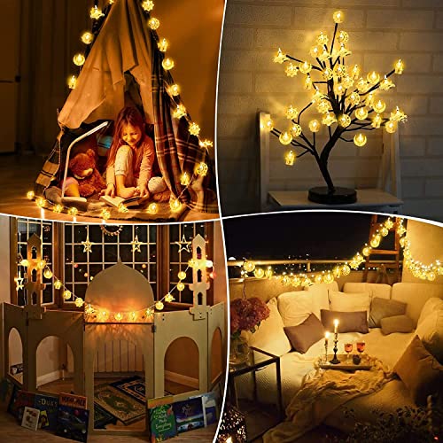 Luci fatate alimentate a batteria: le luci Eid sono alimentate da 3 batterie AA (non incluse nella confezione). Le luci della stringa sono pronte per l'uso dopo aver installato le batterie. Può essere utilizzato per decorare la tua casa durante il Ramadan e decorare il tuo matrimonio o festa. Ci sono due modalità di luce continua e luce lampeggiante.