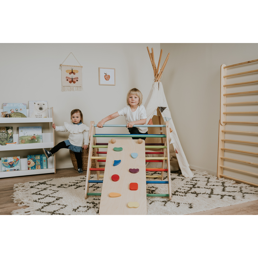 Dettagli del prodotto: Età: da 6 mesi La rampa può essere assemblata in diverse forme Il vantaggio delle diverse costruzioni è che ogni variante ha un effetto unico. Le diverse forme e durezze dello scivolo contribuiscono a massaggiare i piedi del bambino I piedi dei piccoli si fanno strada Dimensioni e peso: Dimensioni assemblate (lunghezza x larghezza): 88 x 37 cm Peso: 4 kg Materiale e cura: Realizzato in compensato di betulla certificato FSC, di provenienza sostenibile.