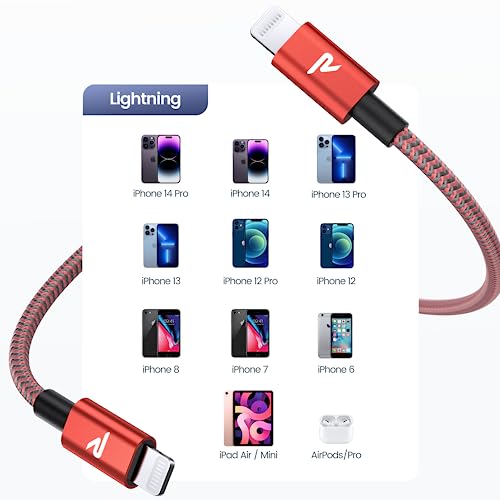 RAMPOW - Cavo Lightning a USB [Certificato Apple MFi] Compatibile con iPhone11/ XR/XS/X/ 8/ 8P/ 7/ 7P/ 6S/ 6SP/ 6P/ 6/ SE/ 5s/ 5c/ 5 / iPad/iPod - Rosso 2M