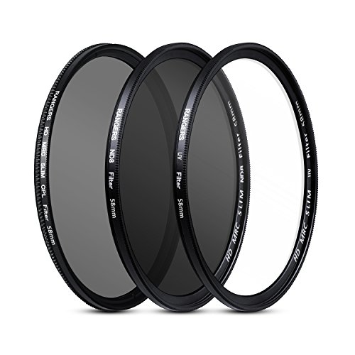 Ranagers Professional 58mm Camera Filter Accessory Kit 58mm Filter Kit: UV Filter + CPL Polarizer Filtri + Neutral Density ND8 Filtro + Camera Filter Bag caso + Lens Cleaning Pen Per CANON EOS Rebel T5i T4i T3i T3 T2i T1i XT XTi XSi SL1 DSLR Cameras RA026
