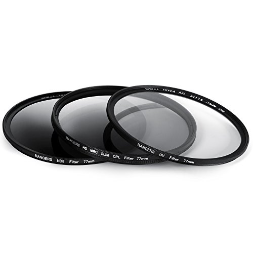 Ranagers Professional 77mm Camera Filter Accessory Kit 77mm Filter Kit: UV Filter + CPL Polarizer Filtri + Neutral Density ND8 Filtro + Camera Filter Bag caso + Lens Cleaning Pen Per CANON 24-105MM, 10-22MM, 17-40MM and NIKON 28-300, 18-300 DSLR Zoom Lenses RA030