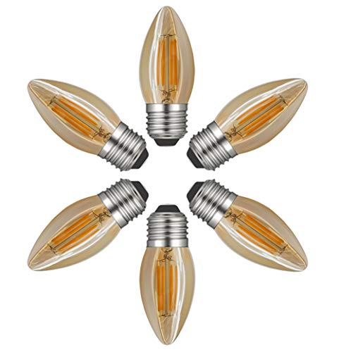RANBOO Lampadina Vintage Edison con Filamento E27 4W Equivalenti 40W, Bianca Calda 2700K, 400 Lumen, Lampadina LED Candela E27, Non Dimmerabile, Pacco da 6