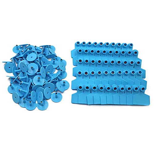 Farm & Ranch - Confezione da 100 etichette per orecchie in plastica TPU per maiale vuoto, per identificare gli animali, maiale, maiale, maiale, giallo, blu, giallo, blu, confezione da 100