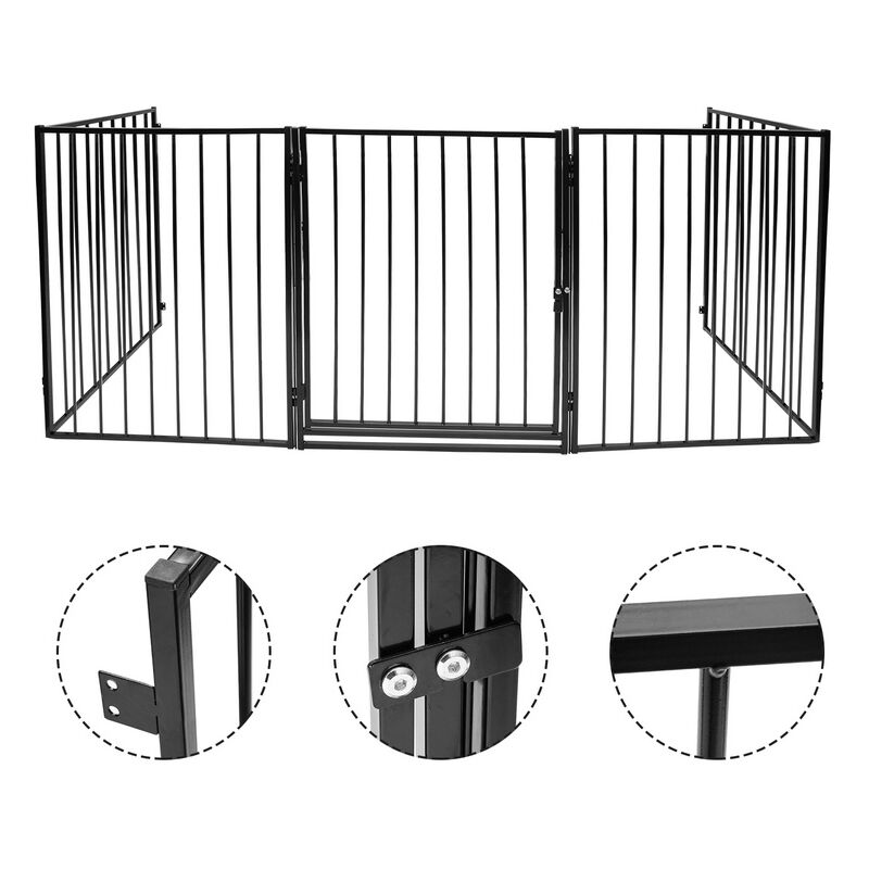 Set di cancelli di sicurezza per bambini composto da 5 elementi, porta inclusa - Il cancello di sicurezza per camino è composto da 5 elementi (1 elemento porta e 4 elementi laterali). Ogni elemento è largo 61 cm e alto 76 cm. Larghezza interna della porta della porta è di circa 52,5 cm. La distanza tra le barre metalliche è di 6 cm. 【Facile da installare】La porta può essere aperta in entrambe le direzioni, sicura e resistente, facile da installare, richiede solo pochi minuti, la staffa a muro allegata può essere facilmente montata a parete. 【Solido e stabile】 Aste metalliche stabili e resistenti al calore combinate con raccordi in plastica. Robusta struttura in metallo con verniciatura a polvere nera opaca. 【Delicato】. Grazie alla sua elevata flessibilità, il cancelletto di sicurezza per bambini può essere facilmente riposto quando è piegato, risparmiando spazio. 【Applicazione del cancello di sicurezza per caminetto】La protezione ideale per il caminetto dei vostri animali domestici o