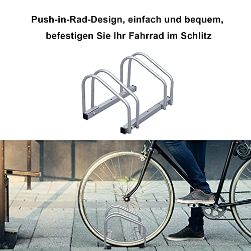 ✔【Robusto e durevole】Il supporto per bicicletta Fiqops è realizzato in tubo di acciaio zincato da 16 mm, resistente alle intemperie, e la superficie è verniciata a polvere di colore argento, antiruggine e resiste a una certa quantità di graffi, perfetto per interni ed esterni.