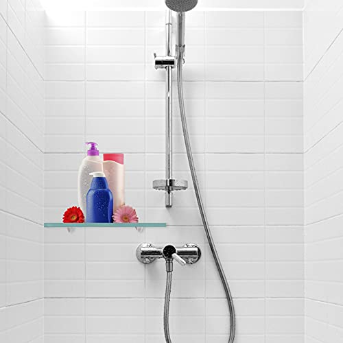 Randaco 2 ripiani in vetro opaco con supporto a parete e vetro di sicurezza monolastra da 8 mm, perfetto come mensola da doccia/bagno per bagno, cucina, balcone (40 x 10 x 0,8 cm)