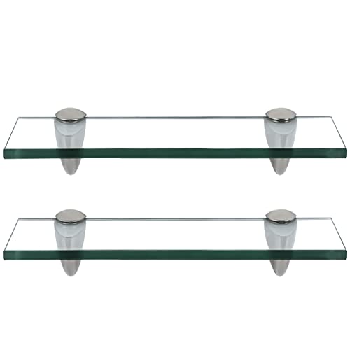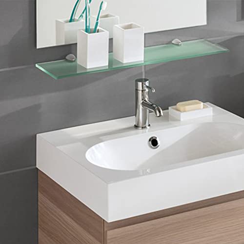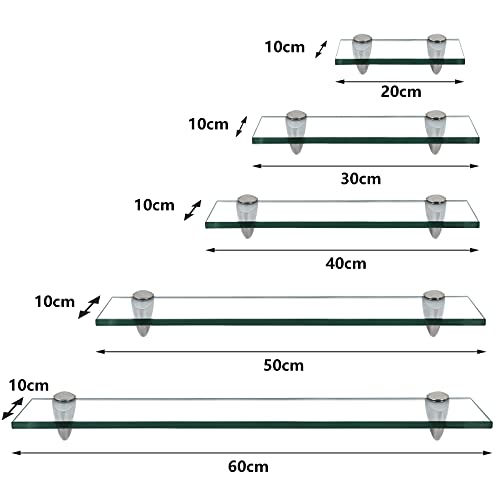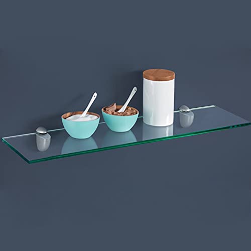 Randaco 2 ripiani in vetro trasparente con supporto a parete e vetro di sicurezza monolastra da 8 mm e supporto, perfetti come mensola da doccia/bagno per bagno, cucina, balcone (30 x 10 x 0,8 cm)