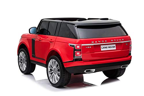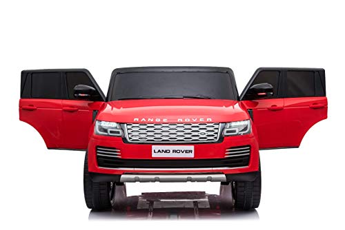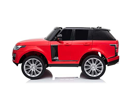 Range Rover elettrico, rosso, doppio sedile in pelle, display LCD con ingresso USB, unità 4x4, batteria 2x 12V7Ah, ruote EVA, assi di sospensione, avviamento a chiave, telecomando Bluetooth da 2,4 GHz