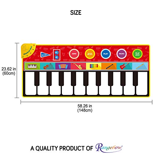 Un prodotto di qualità di RANGEBOW Questo tappetino per pianoforte elettronico è realizzato con tessuto in poliestere morbido, materiale in nylon stente all'acqua e componenti elettronici di qualità. È ecologico e non tossico ed è totalmente sicuro per bambini. Inoltre è un acquisto senza preoccupazioni con la DI Rangebow.