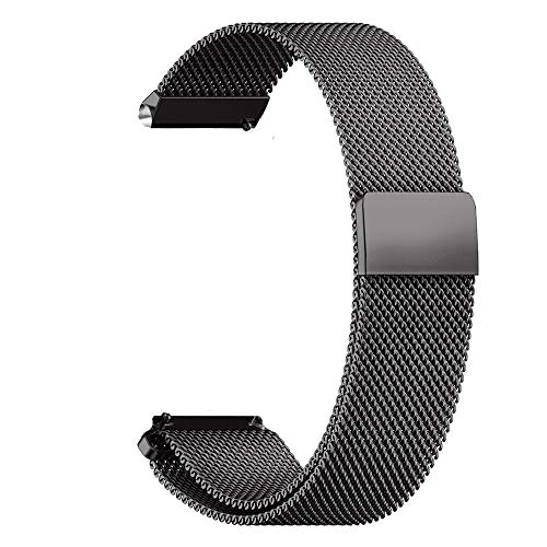 RanGuo Cinturino di Ricambio per Smart Watch con Larghezza di 18 mm / 20 mm / 22 mm, Cinturino in metallo, Regolabile, in Acciaio Inox, Chiusura Magnetica, sgancio rapido (Nero)