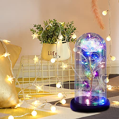 RANJIMA Rosa Bella e la Bestia,Rosa Stabilizzata Vera in Vetro Rosa Eterna con Luci LED in Cupola di Vetro, Regali Matrimonio Decorazioni per Donna Festa Mamma Ragazza Compleanno Anniversario Natale